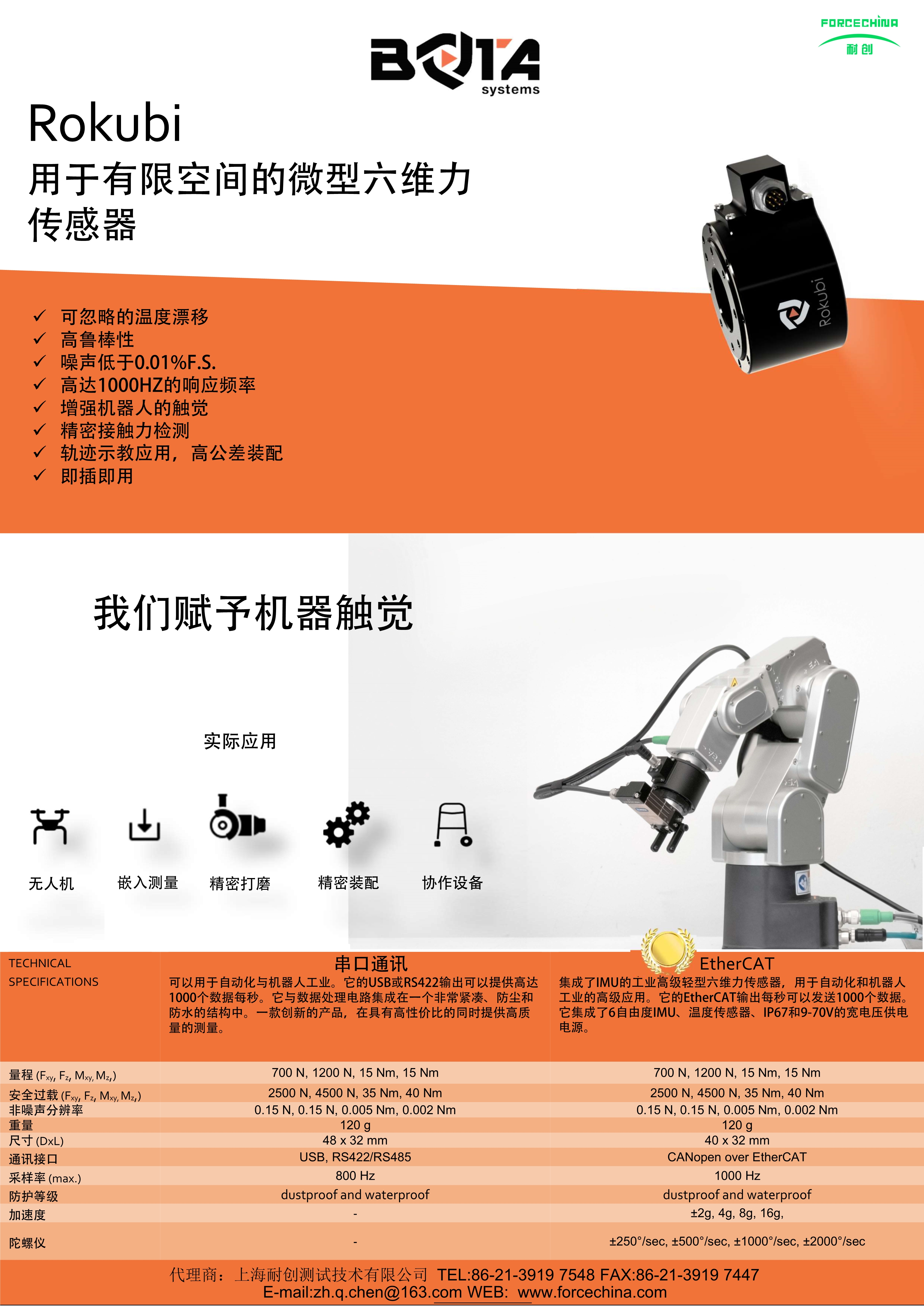 USB,RS422 800Hz采樣率;防護等級 Dustproof and water-resistant