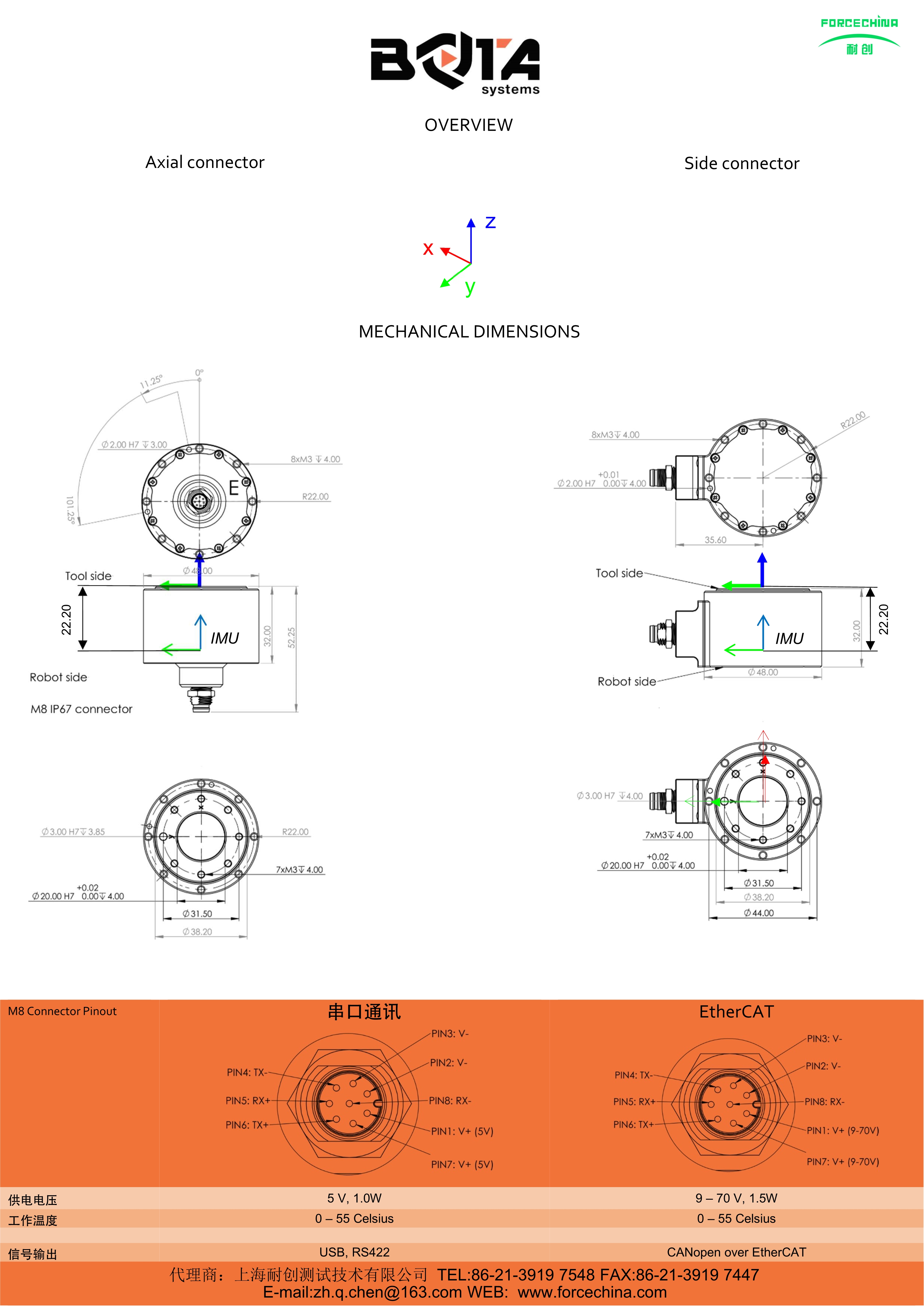 2. CANopen over EtherCAT 1000Hz采樣率 ;IMU 6DoF IMU ; 加速度±2g,4g,8g,16g;