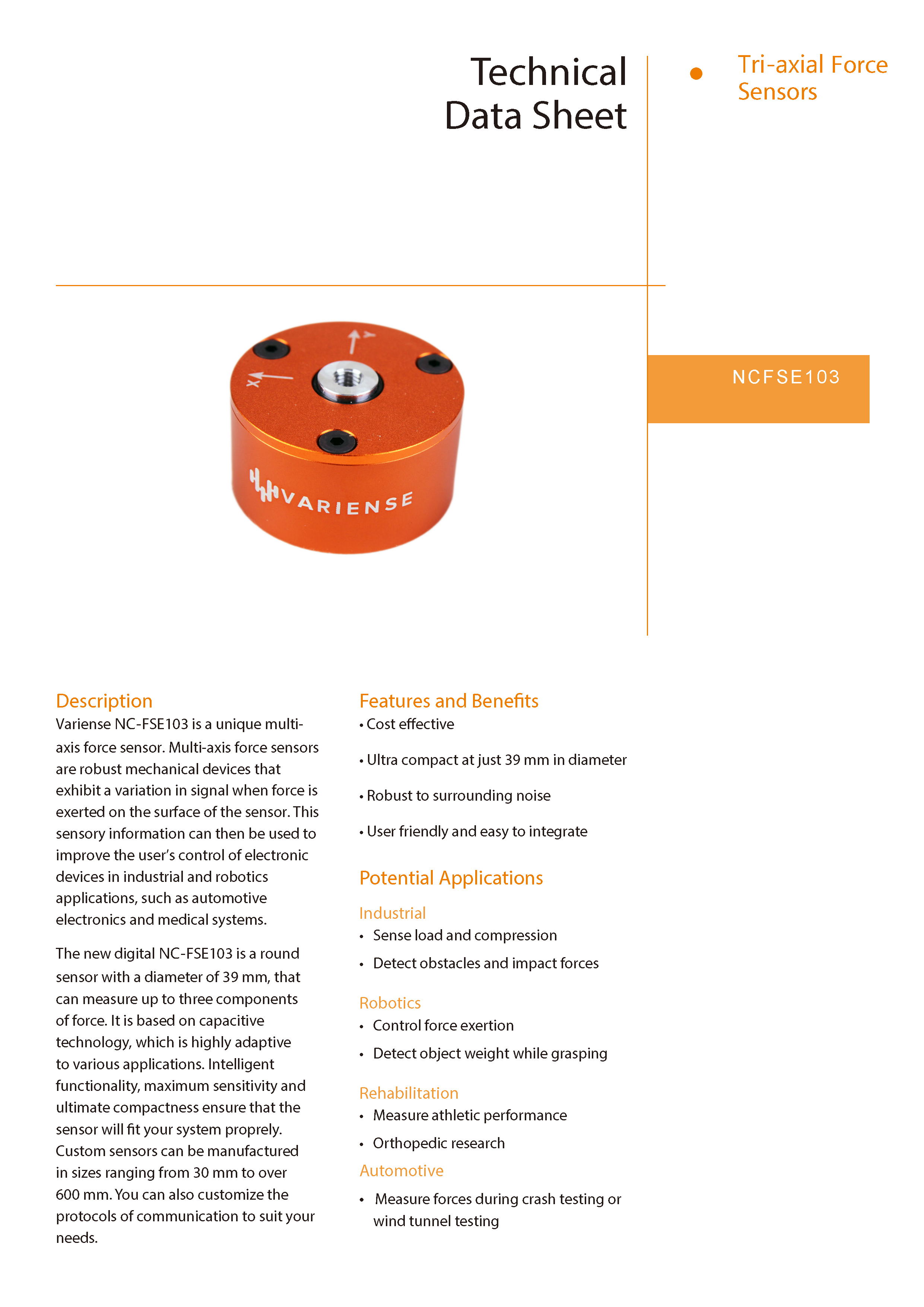 美國VARIENSE FSE103三軸力傳感器