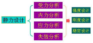 其中的靜力設計是很重要的,包括受力分析、內力分析、應力分析和失效分析。最后有強度設計、剛度設計和穩定設計。所以可以看出,靜力設計在工程設計中有很重要的地位。