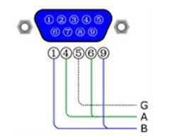 RS422接口的定義很復雜,一般只使用四個端子,其針腳定義分別為TXD+、TXD-、RXD+、RXD-,其中TXD+和TXD-為一對數據發送端子,RXD+和RXD-為一對數據接收端子,參見圖1-4。
